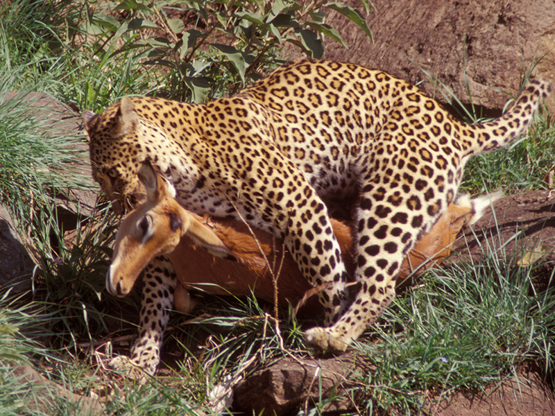 Half Tail with killed impala - Panthera pardus - Masai Mara - Kenya - 02-1997