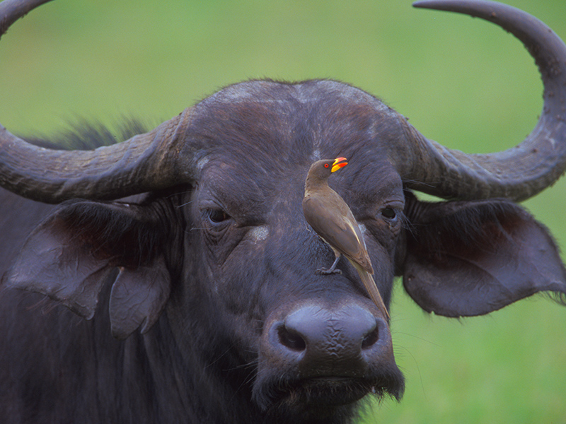 Kaffernbüffel - buffalo with oxpecker portrait - Syncerus caffer -Masai Mara - Kenya -February 1998