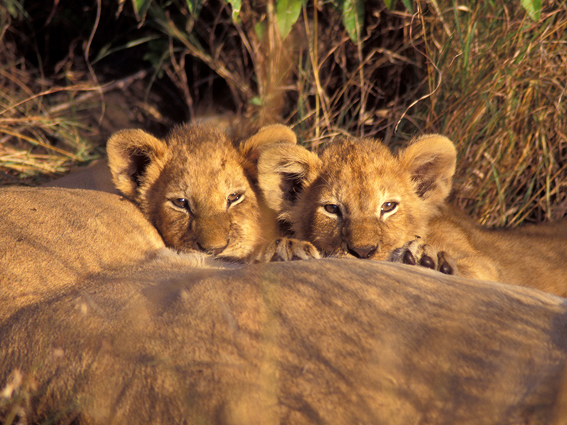 Suckling Lion Cubs - Panthera leo - Masai Mara Game Resere - Kenya - 09-1997
